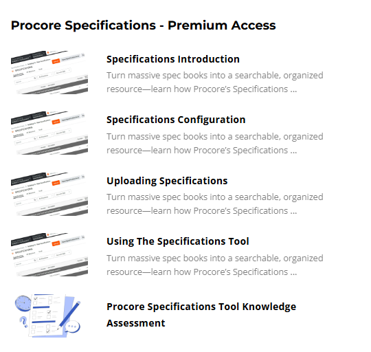 The Procore Specifications Tool training shows your team how to manage, upload, and review specifications with confidence. Youāll learn how to configure areas, upload spec books, manage revisions, and publish updates. This course also covers generating submittal registers automatically from your specifications, helping teams save time and stay proactive. By mastering this tool, your company can keep specifications organized, avoid outdated information, and ensure everyone has access to the most current standards in real time.